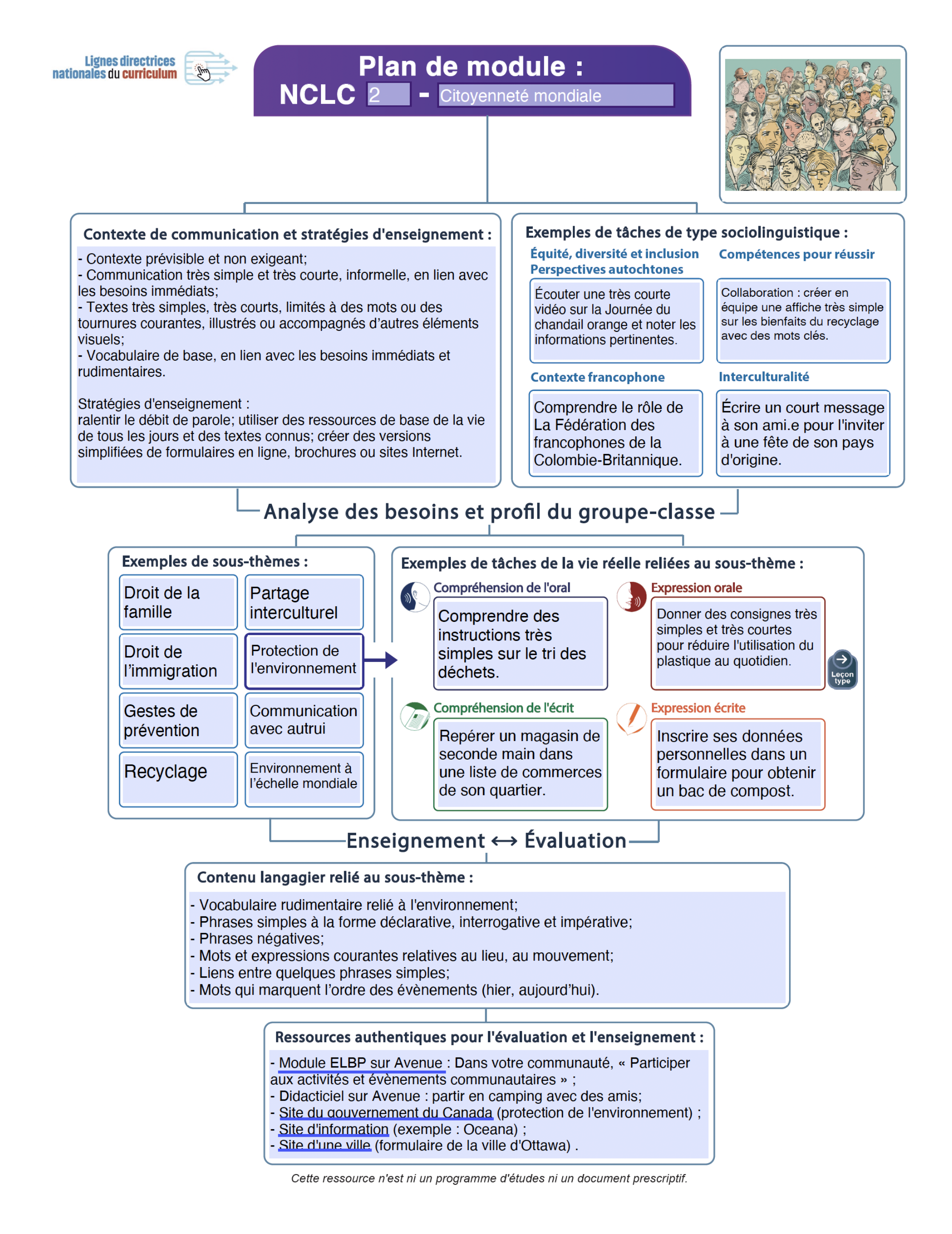 10. Cette section propose des ressources didactiques ou cognitives authentiques (pour apprendre efficacement et avoir accès à l’information) : illustrations, maquettes, affiches, jeux, objets de manipulation, manuels, sites Internet, etc. Il est fortement conseillé de consulter les ressources déjà développées par le NCLC comme « Les modules ELPB, le manuel Le pouls du Canada ou les unités du Didacticiel ».